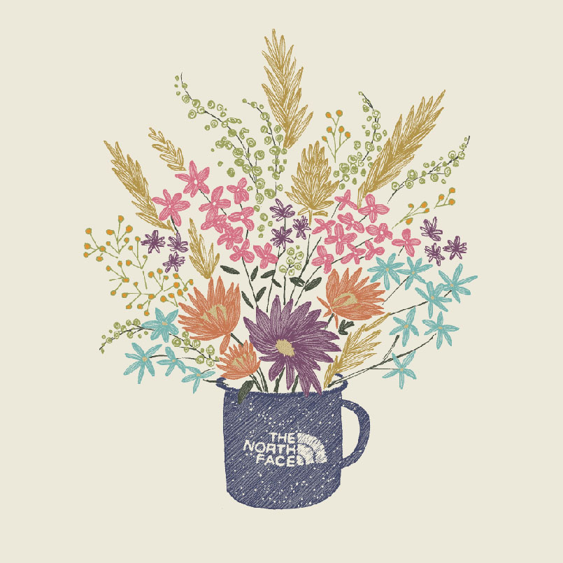 Women’s tees inspired by National Park brochures of animals found in Yosemite National Park with California scenery and foliage, done in pencil.